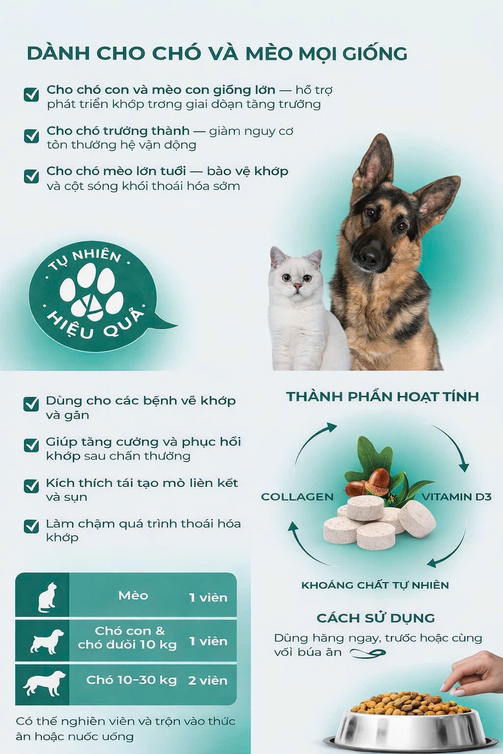 ♦ Cho chó con và mèo con giống lớn - hỗ trợ phát triển khớp trơng giai đoạn tăng trưởng