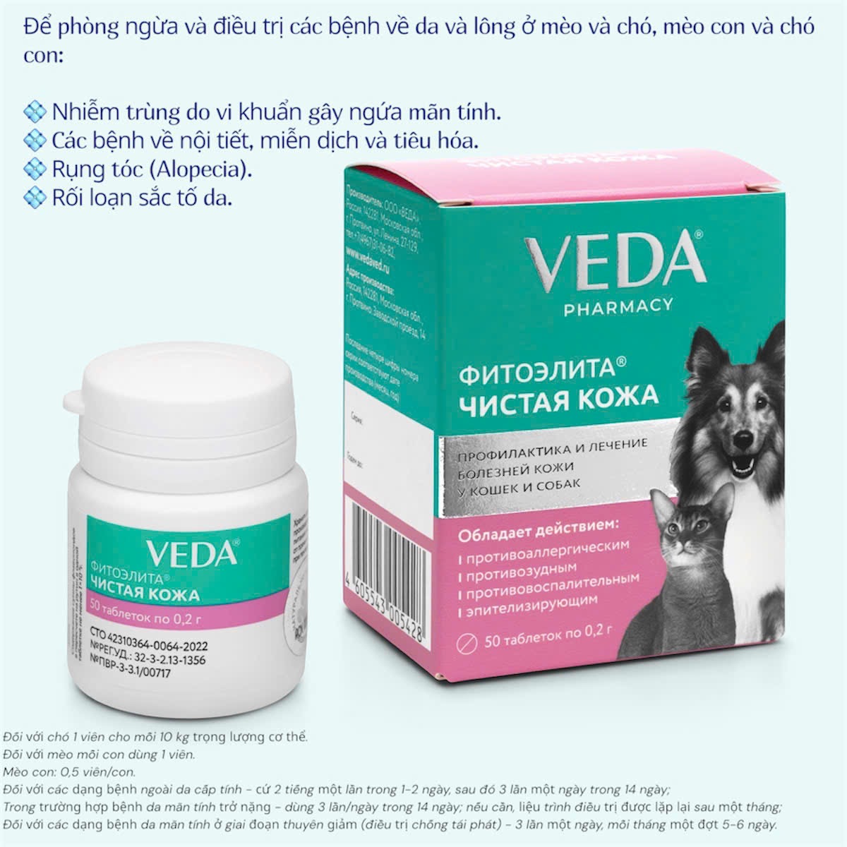 Để phòng ngừa và điều trị các bệnh về da và lông ở mèo và chó, mèo con và chó con: